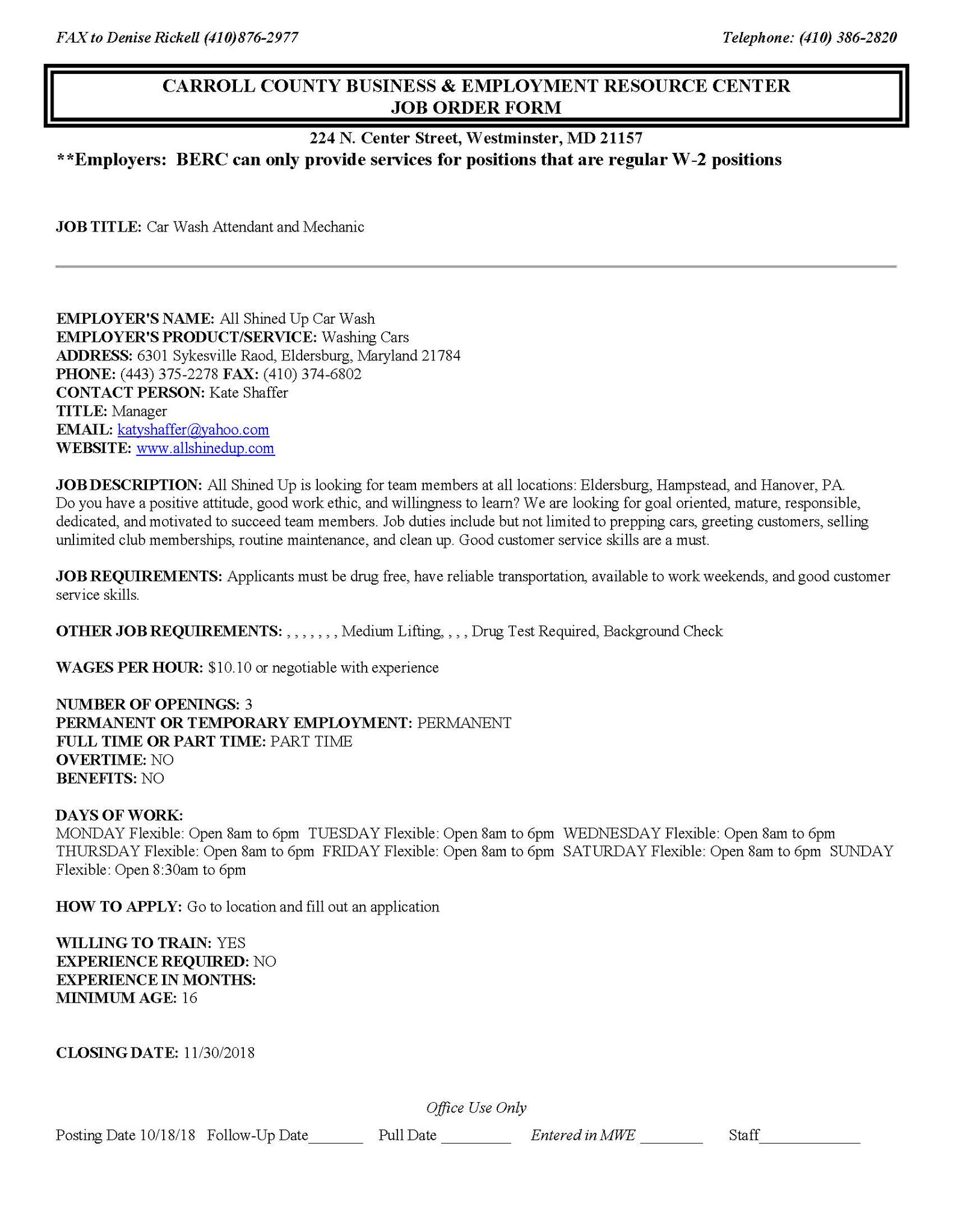 Carroll County Workforce Development On Twitter Hiring All Shined Up Car Wash Eldersburg Md Seeking Attendant And Mechanic Part Time Willing To Train To Apply In Person At 6301 Sykesville Rd Eldersburg Https T Co Gitexc6wi1